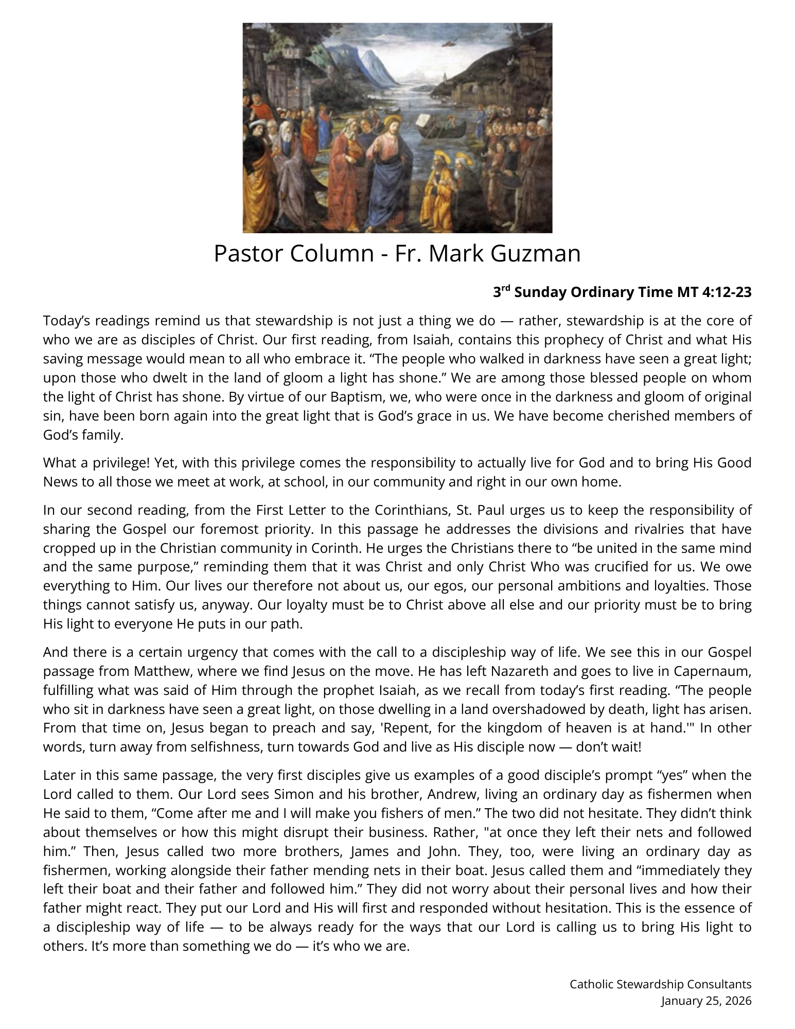 Bulletin Pastor Column Homilies Daily Readings Saint Of The Week Worship Aid Calendar Facilities Scheduler